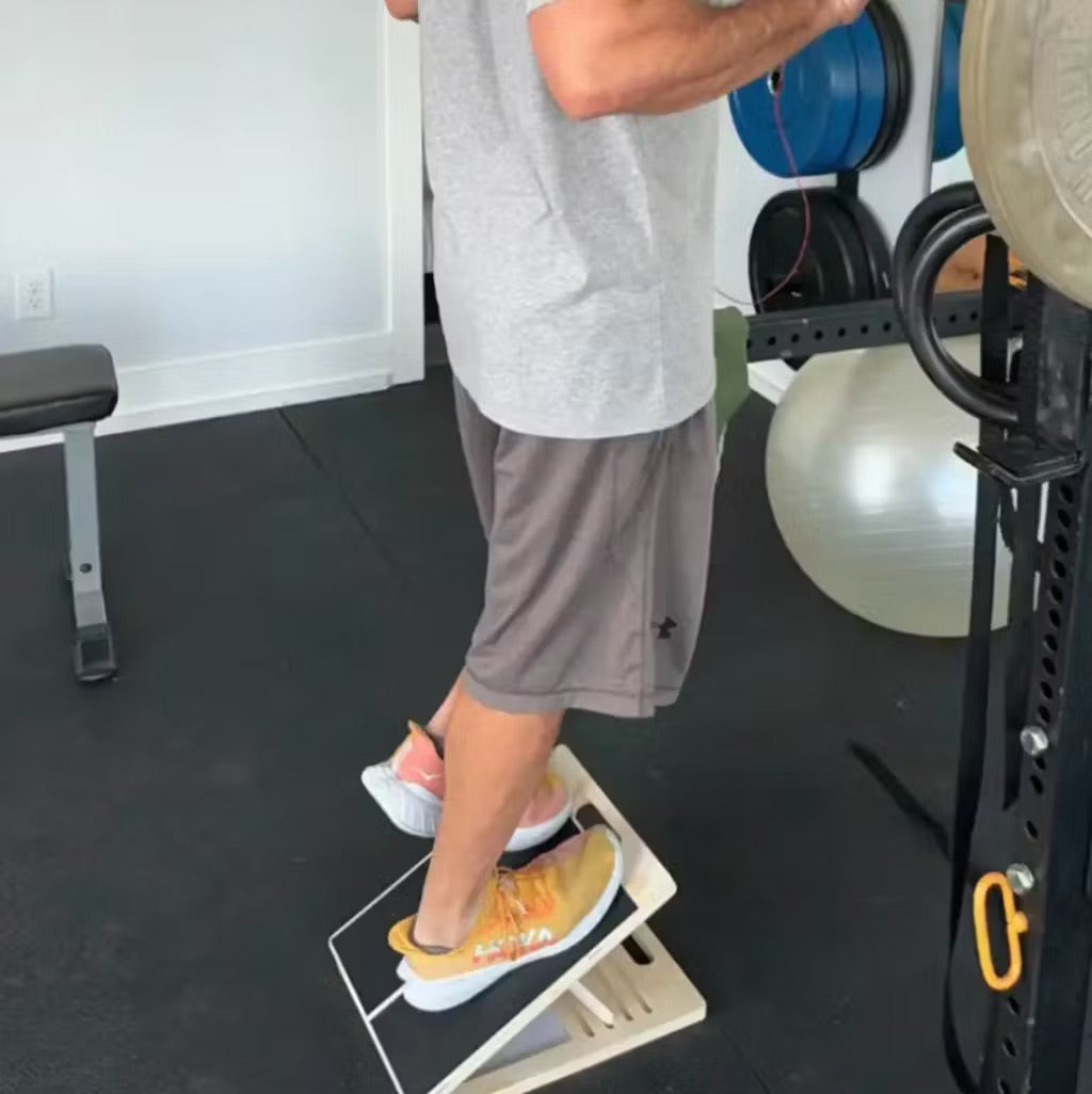 Calf Raise: Stand on board, raise and lower heels slowly.